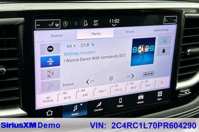 OFFERING HOME DELIVERYSilver Mist Clearcoat 2023 Chrysler Pacifica Hybrid Touring L FWD CVT 3.6L V6 NON-SMOKER, Backup Camera, Bluetooth®, Alloy Wheels, Aluminum Wheels, Climate Package, Heat Package, Light Package, Power Mirror Package, Power Package, Remote Start, Pacifica Hybrid Touring L, 4D Passenger Van, 3.6L V6, CVT, FWD, Silver Mist Clearcoat, Black w/Caprice Leatherette Bucket Seats w/S Logo, 10.1 Touchscreen Display, 3.59 Axle Ratio, 3rd row seats: split-bench, 4-Wheel Disc Brakes, 6 Speakers, ABS brakes, Air Conditioning, Alloy wheels, AM/FM radio: SiriusXM, Apple CarPlay, Apple CarPlay/Android Auto, Auto-dimming Rear-View mirror, Automatic temperature control, Black Seats, Brake assist, Bumpers: body-color, Caprice Leatherette Bucket Seats, Compass, Delay-off headlights, Disassociated Touchscreen Display, Driver door bin, Driver vanity mirror, Driver's Seat Mounted Armrest, Dual front impact airbags, Dual front side impact airbags, Electronic Stability Control, Emergency communication system: Uconnect Access, Exterior Parking Camera Rear, Four wheel independent suspension, Front Bucket Seats, Front dual zone A/C, Front Fascia Air Deflectors, Front fog lights, Front reading lights, Fully automatic headlights, Google Android Auto, GPS Antenna Input, Heated door mirrors, Heated front seats, Heated steering wheel, Heavy Duty Suspension, Illuminated entry, Integrated Active Noise Cancellation, Integrated Center Stack Radio, Knee airbag, Low tire pressure warning, Memory seat, Occupant sensing airbag, Outside temperature display, Overhead airbag, Overhead console, Panic alarm, Passenger door bin, Passenger seat mounted armrest, Passenger vanity mirror, Power door mirrors, Power driver seat, Power Liftgate, Power steering, Power windows, Quick Order Package 2EL, Radio data system, Radio: Uconnect 5 w/10.1 Display, Rain sensing wipers, Rear air conditioning, Rear reading lights, Rear window defroster, Rear window wiper, Reclining 3rd row seat, Remote keyless entry, Security system, Speed control, Split folding rear seat, Spoiler, Steering wheel mounted audio controls, Tachometer, Telescoping steering wheel, Tilt steering wheel, Traction control, Trip computer, Turn signal indicator mirrors, USB Host Flip, Variably intermittent wipers, Voltmeter, Wheels: 17 x 7.0 Diamond Cut w/Painted Pockets.Recent Arrival!