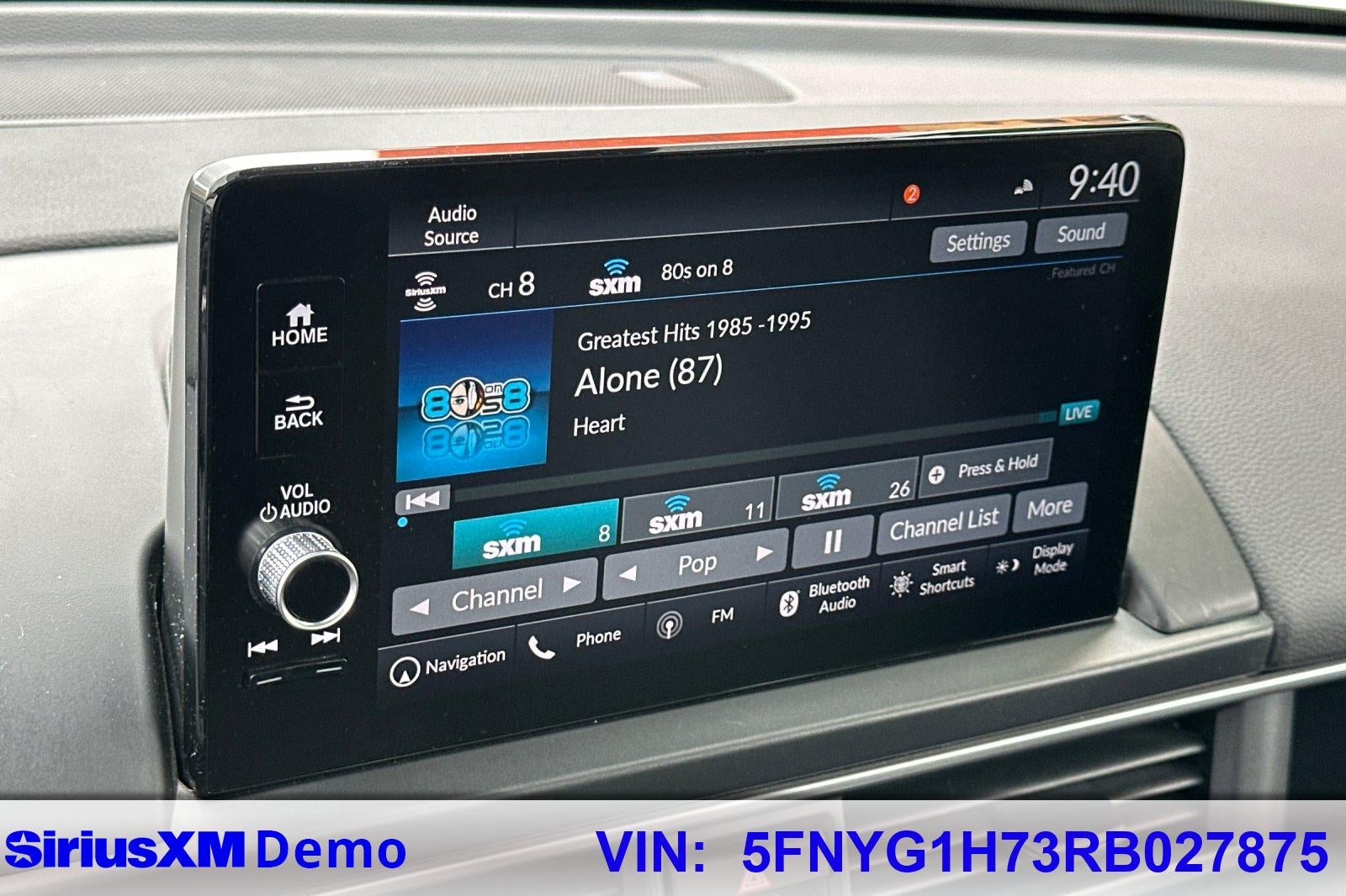 - Radio: BOSE Premium Sound System -inc: 12 speakers w/subwoofer, 9" color touchscreen, Bluetooth® HandsFreeLink and streaming audio, Radio Data System (RDS), Speed-sensitive Volume Compensation (SVC), wireless Apple CarPlay and Android Auto compatibility, Wi-Fi hotspot capability (requires AT&T data plan), SMS text message function (Your wireless carrier's rate plans apply, State or local laws may limit use of texting feature.), SiriusXM (SiriusXM requires a subscription after any trial period, If you decide to continue your SiriusXM service at the end of your trial subscription, the plan you choose will automatically renew and bill at then-current rates until you call SiriusXM at 1-866-635-2349 to cancel, See our customer agreement for complete terms at www.siriusxm.com, Fees and programming subject to change, Available in the 48 contiguous United States and D.C, SiriusXM and all related marks and logos are trademarks of SiriusXM Radio Inc.), HD Radio, 2.5-amp USB type-A smartphone/audio interface port in front console, Honda Satellite-Linked Navigation System w/voice recognition and Honda Real-Time Traffic (The Honda Satellite-Linked Navigation System functions in the United States (not including territories, except Puerto Rico) and Canada, Honda HD Digital Traffic service is only available in the United States, except Alaska, Please see your Honda dealer for details.), HondaLink subscription services ( complimentary trials of security for 1 year and a remote/concierge trial for 3 months, Enrollment is required to access the remote/concierge trial and to access certain features of security, At the end of each trial period, purchase of a subscription is required to continue the respective services.), multi-zone audio and CabinTalk in-car PA system