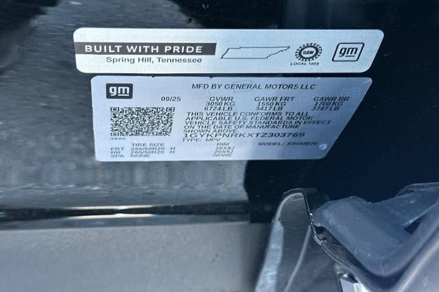 Clean CARFAX. Stellar Black Metallic 2026 Cadillac LYRIQ Luxury 1-Speed Automatic Electric Motor NON-SMOKER, Backup Camera, Bluetooth®, Alloy Wheels, Aluminum Wheels, Climate Package, Heat Package, Light Package, Power Mirror Package, Power Package, Remote Start, LYRIQ Luxury, 4D Sport Utility, Electric Motor, 1-Speed Automatic, Stellar Black Metallic, Noir w/Santorini Blue Accents w/Inteluxe Seat Trim, 4-Wheel Disc Brakes, 6-Way Power Front Passenger Seat Adjuster, 7 Speakers, 7-Speaker Audio System Feature, 8-Way Power Driver Seat Adjuster, ABS brakes, Air Conditioning, Alloy wheels, AM/FM radio: SiriusXM with 360L, Apple CarPlay/Android Auto, Auto High-beam Headlights, Auto-dimming door mirrors, Auto-dimming Rear-View mirror, Automatic temperature control, Brake assist, Bumpers: body-color, Compass, Delay-off headlights, Driver 4-Way Power Lumbar Seat Adjustment, Driver and Front Passenger Heated Seats, Driver door bin, Driver vanity mirror, Dual front impact airbags, Dual front side impact airbags, Electronic Stability Control, Emergency communication system: OnStar and Cadillac connected services capable, Four wheel independent suspension, Front and Rear 5-Link Suspension, Front Bucket Seats, Front Center Armrest, Front dual zone A/C, Front Passenger 4-Way Power Lumbar Seat Adjustment, Front Passenger Seat Memory, Front reading lights, Fully automatic headlights, Garage door transmitter, Google Built-in, Heated door mirrors, Heated front seats, Heated steering wheel, Hitch Guidance with Trailering Assist Guideline, Hitch View, Illuminated entry, Inteluxe Seat Trim, Knee airbag, Leather steering wheel, Low tire pressure warning, Memory seat, Occupant sensing airbag, Outside temperature display, Overhead airbag, Overhead console, Panic alarm, Passenger door bin, Passenger vanity mirror, Power door mirrors, Power driver seat, Power Liftgate, Power passenger seat, Power steering, Power windows, Preferred Equipment Group 1SC, Radio data system, Radio: Infotainment Experience, Rain sensing wipers, Rear reading lights, Rear seat center armrest, Rear window defroster, Remote keyless entry, Security system, SiriusXM with 360L Trial Subscription, Speed control, Speed-sensing steering, Split folding rear seat, Spoiler, Steering wheel memory, Steering wheel mounted audio controls, Telescoping steering wheel, Tilt steering wheel, Traction control, Trip computer, Turn signal indicator mirrors, Variably intermittent wipers, Wheels: 20" Split 6-Spoke Alloy, Wireless Apple CarPlay/Wireless Android Auto.